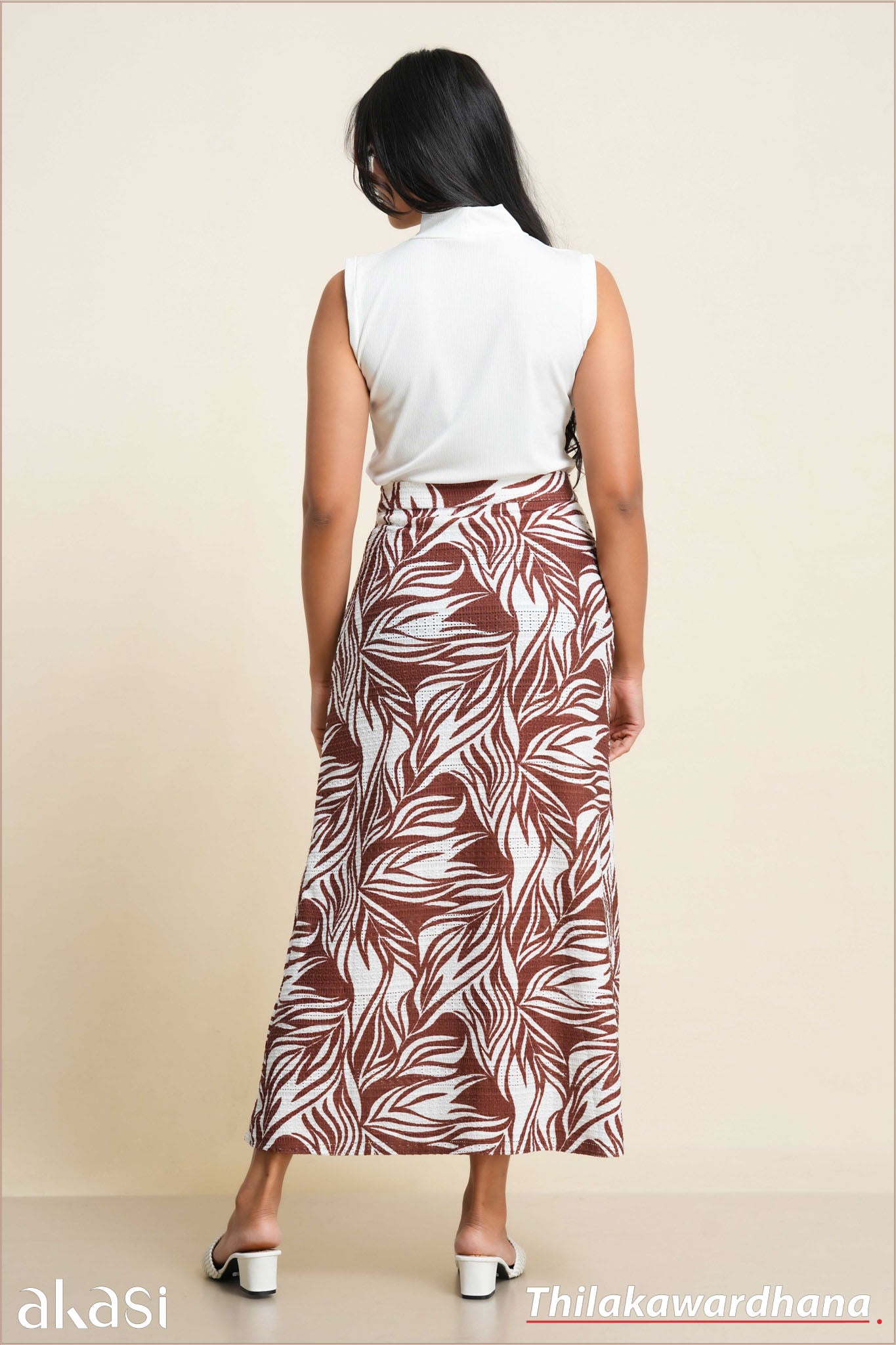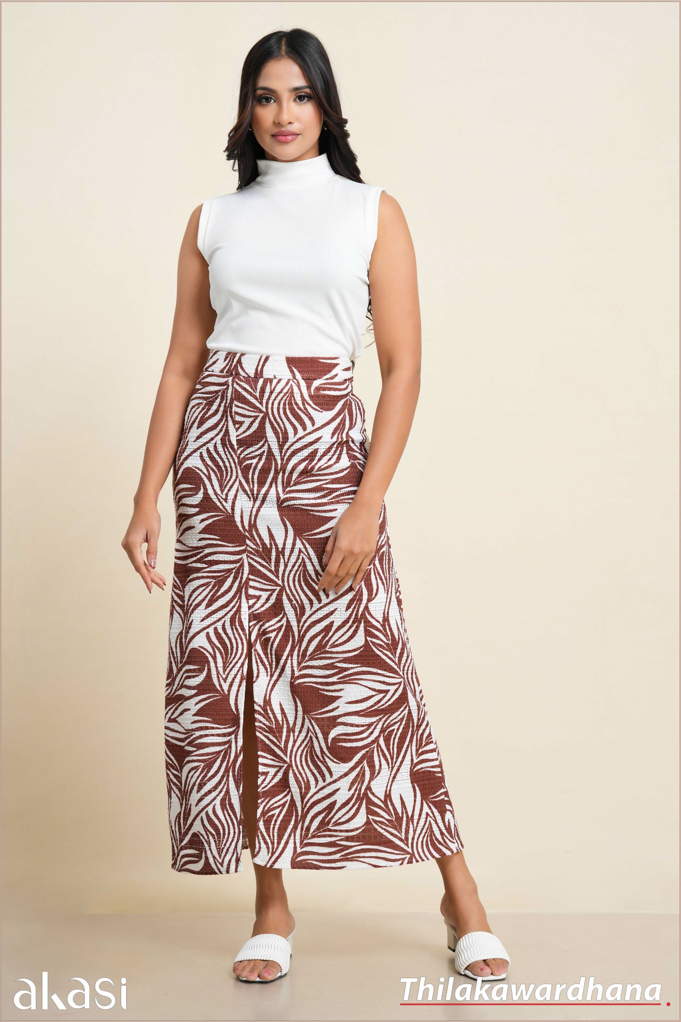 Akasi Slit Detailed Printed Cutlawn Skirt
