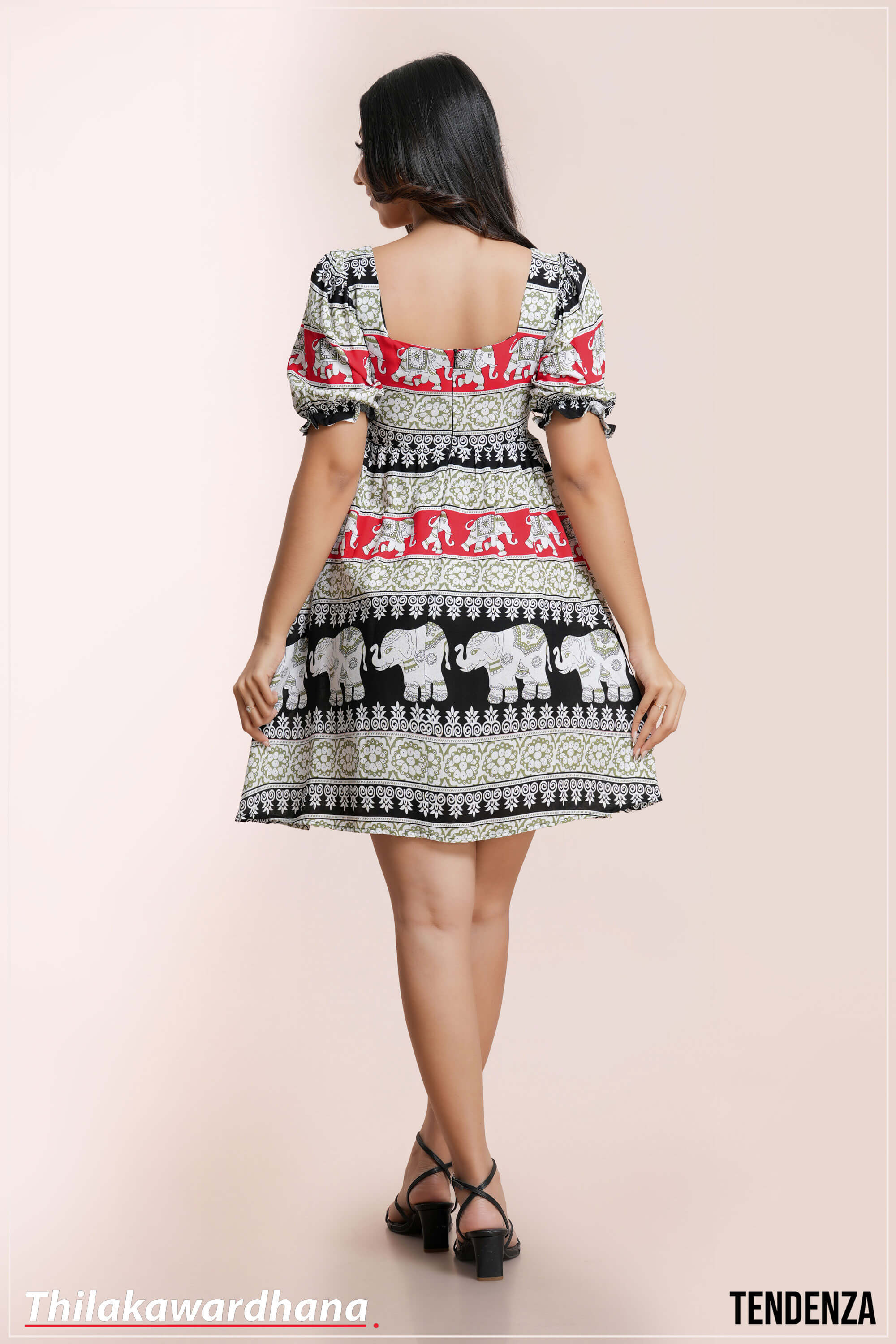 Tendenza Boho Elephant Print Puff Sleeve Dress