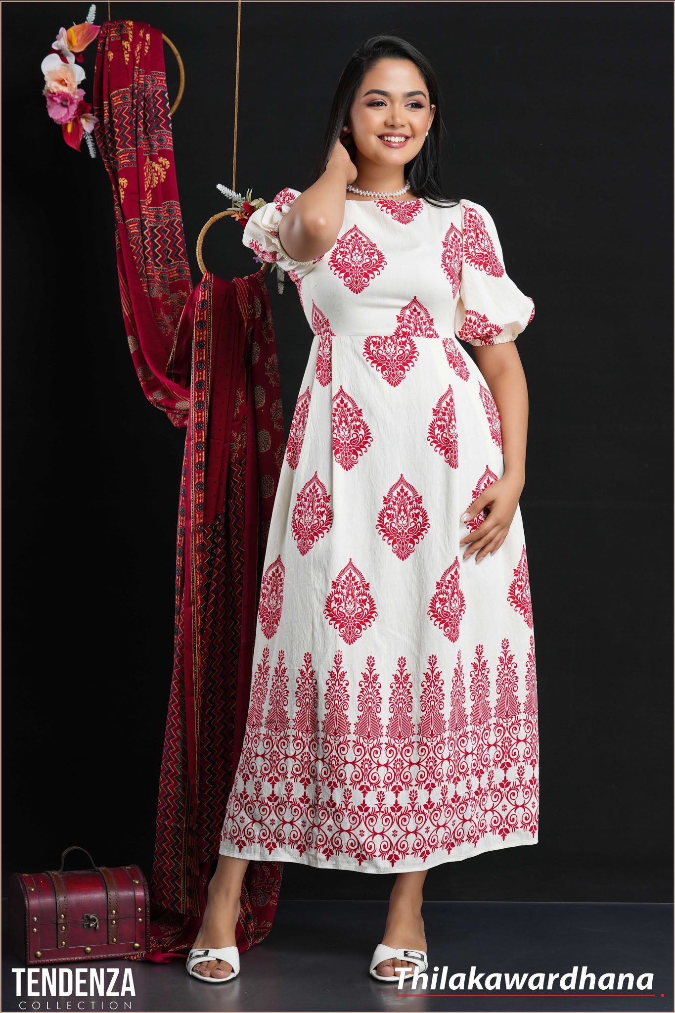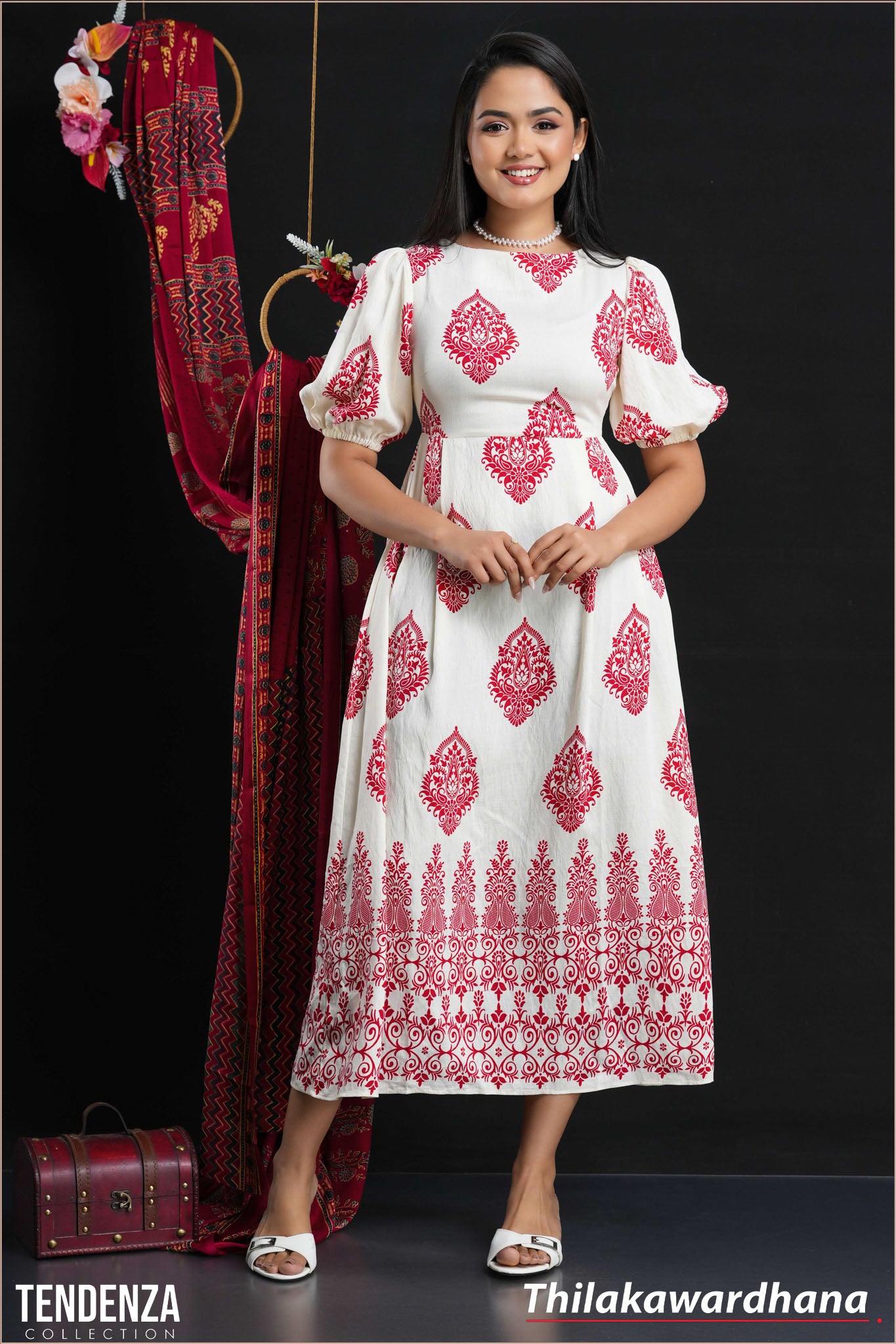 Tendenza Crew Neck Puff Sleeve Midi Dress
