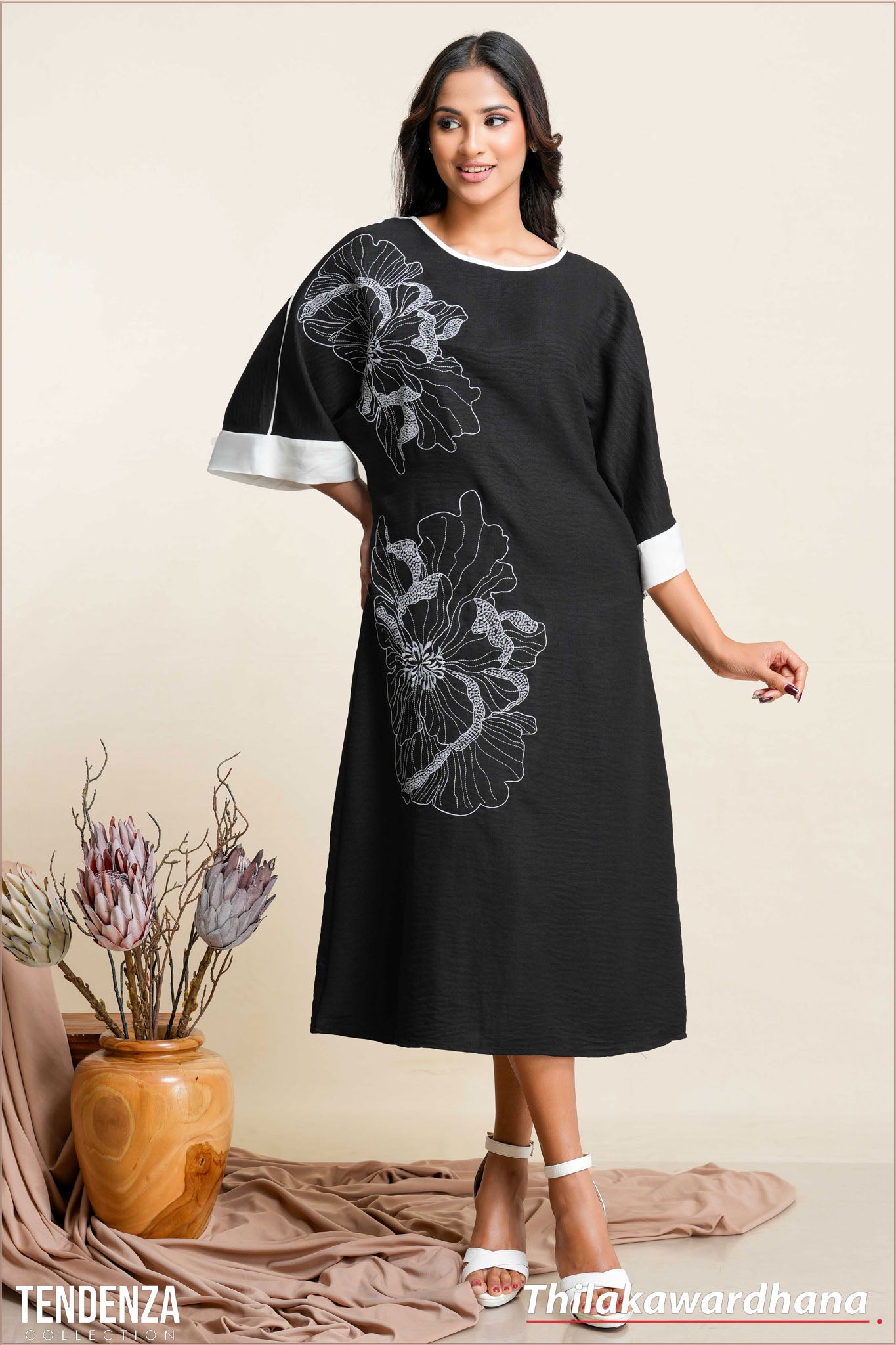 Tendenza Embroidary Kaftan Linen Dress