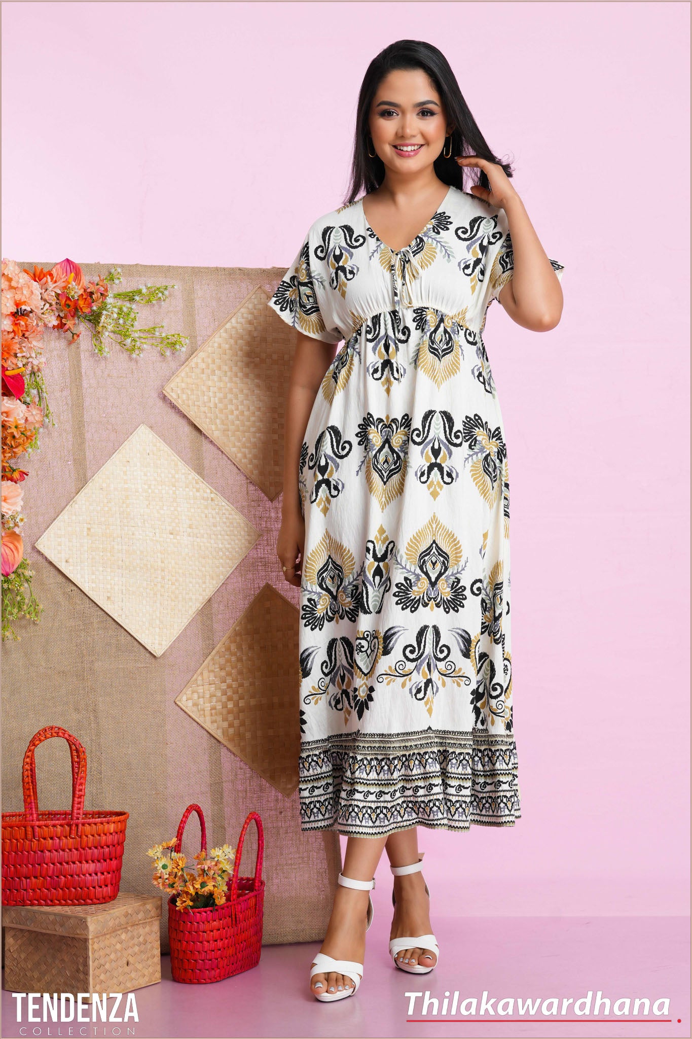 Tendenza Embroidary Printed Midi Dress