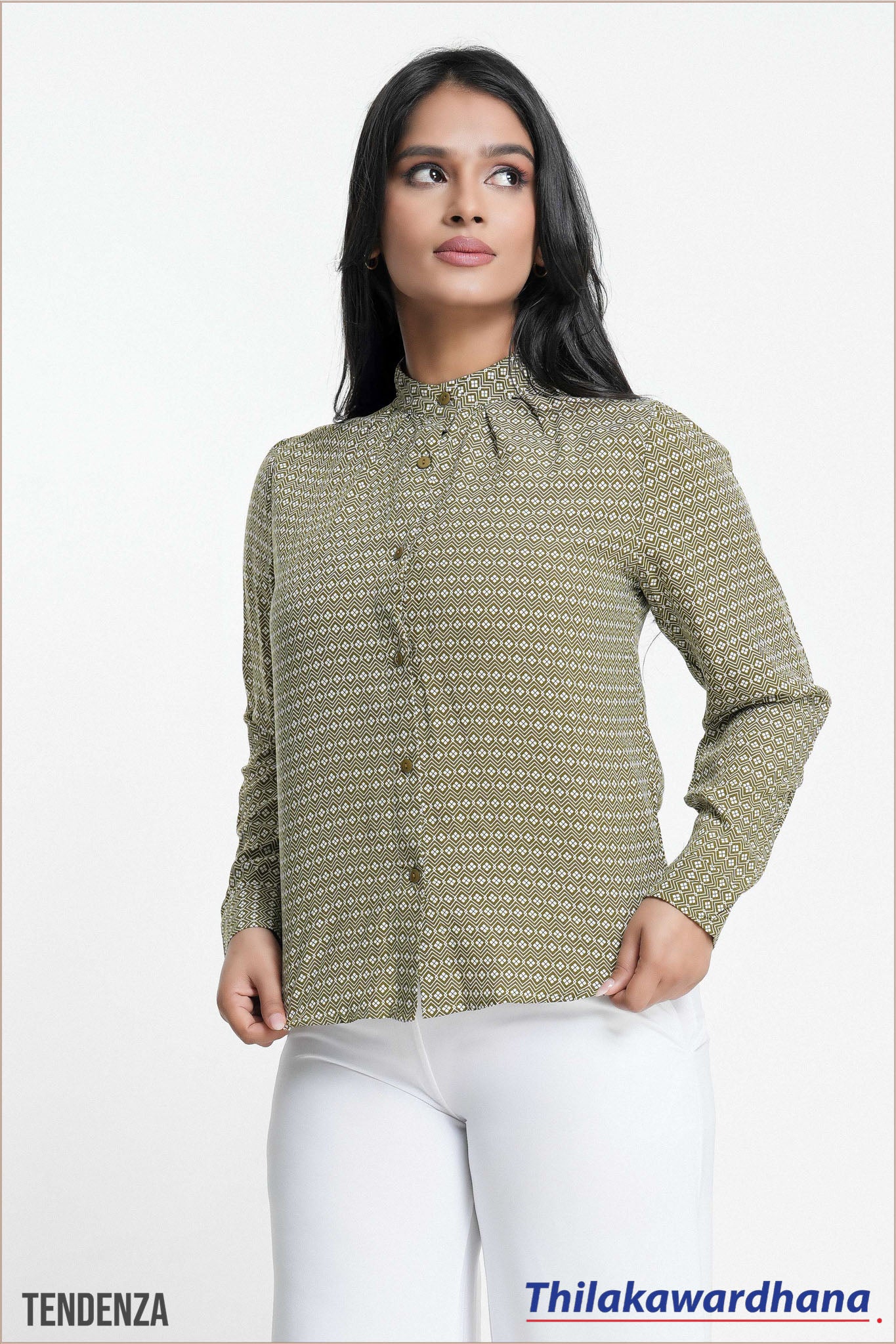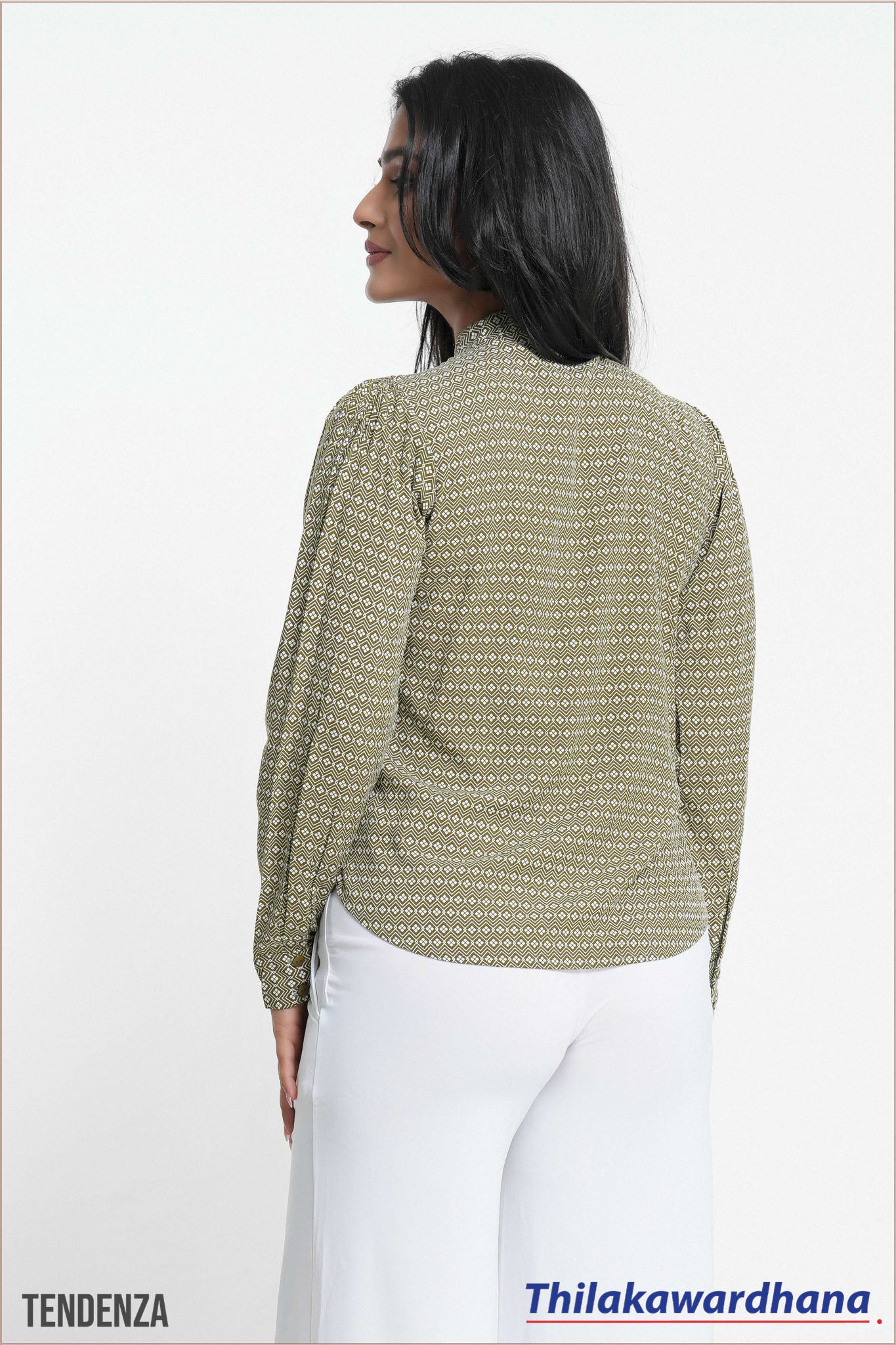 Tendenza High Neck Print Bishop Sleeve Top